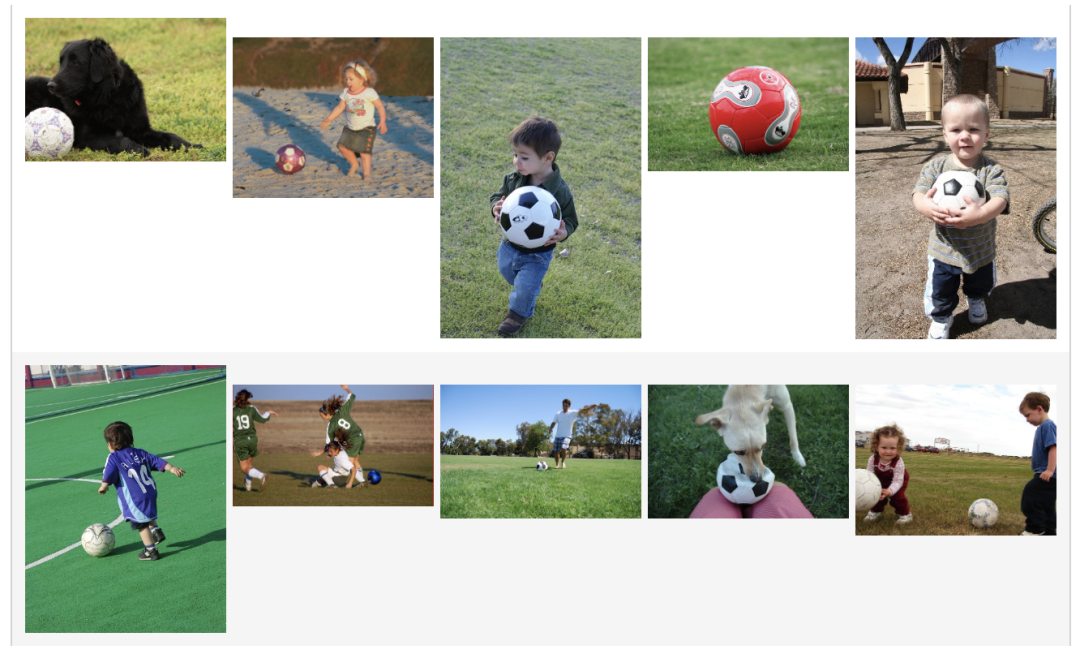 数据:10 张图片来自图像数据集 ImageNet 中的“soccer_ball”类别,包括了足球相关的图片。 特征提取:image_text_embedding.taiyi[3] 能够将中文或图片转换成向量,使用同一个模型生成的向量拥有同样的特征空间。 向量数据库:这里搭建的「以文搜图」系统使用了 Milvus[4] 实现向量存储与检索,包括匹配对应的图片路径。