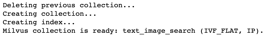 print(f'Milvus collection is ready: {COLLECTION_NAME} ({INDEX_TYPE}, {METRIC_TYPE}).')