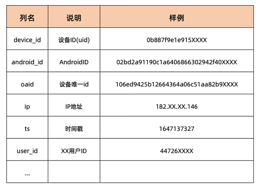 另一类是用户行为信息,如用户登录游戏信息、用户在游戏中的交易信息、用户在游戏中的交流信息等等。这类信息中会记录用户userid和移动设备id等。在一个典型的游戏社区平台中,一般提供两张数据表,一个是平台账号行为表game_platform_info,记录用户登录游戏平台的具体信息,如下表所示: