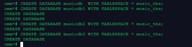2,然后创建表空间,并在该表空间上创建多个数据库