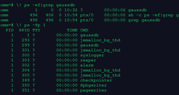 5,最后进行查看openGauss数据库上实例的进程、线程