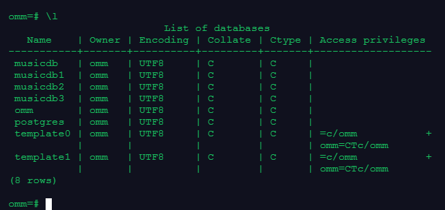 4,执行\l命令,查看openGauss实例中有哪些数据库