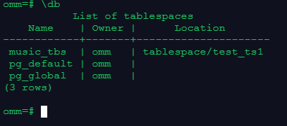 3,执行\db命令,查看openGauss数据库上有哪些表空间