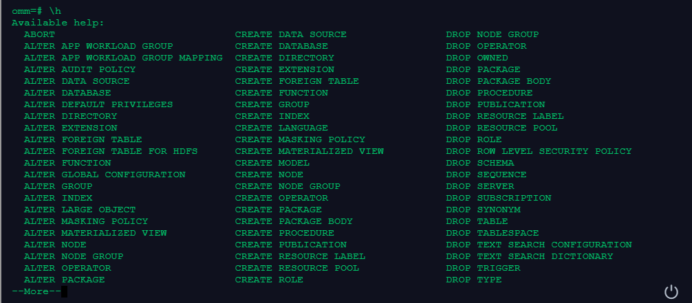 --\c[onnect] [DBNAME]命令,元命令\ c[onnect] [DBNAME]的作用是在gsql中,切换连接的数据库postgres。