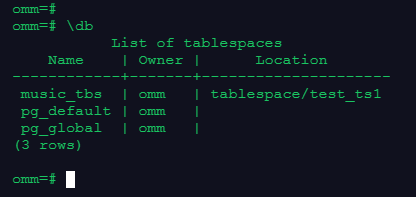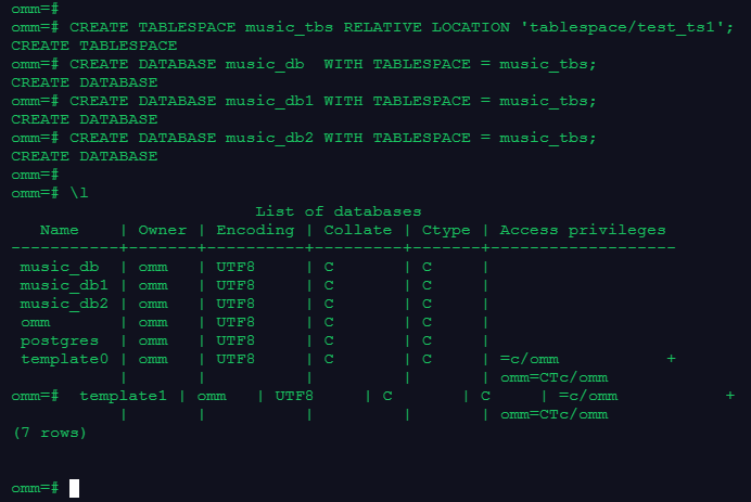 CREATE TABLESPACE music_tbs RELATIVE LOCATION 'tablespace/test_ts1';