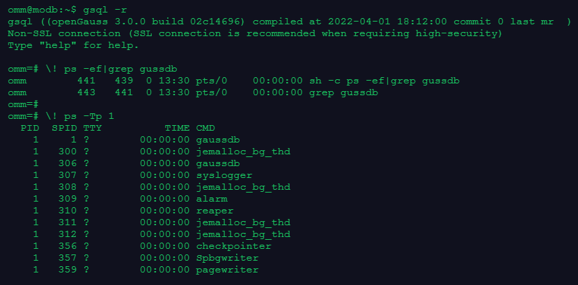 4.使用操作系统命令,查看openGauss实例的进程、线程
