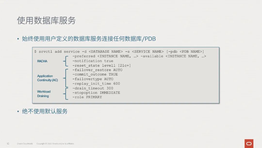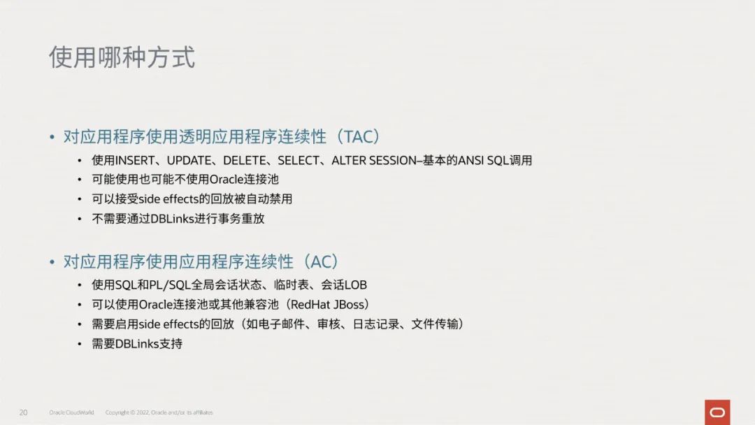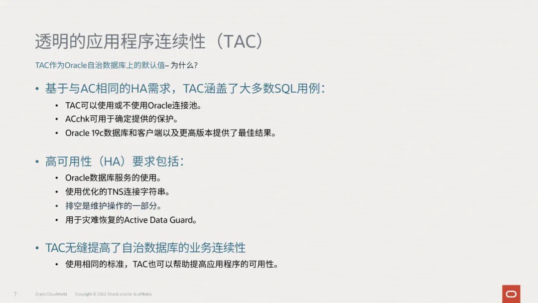 在Oracle自治数据库中,TAC就是默认配置的,提高了自治数据库的业务连续性:
