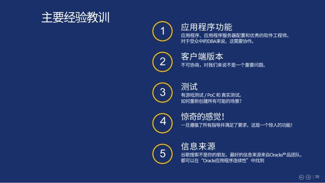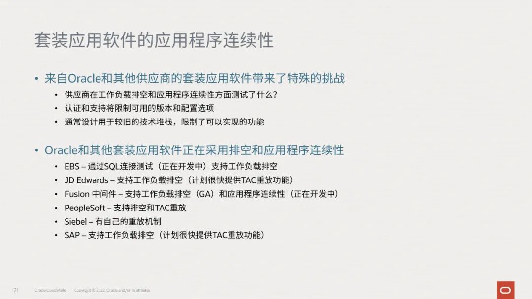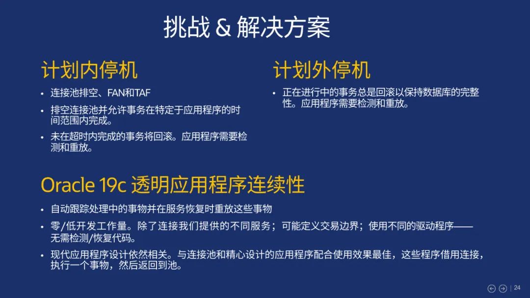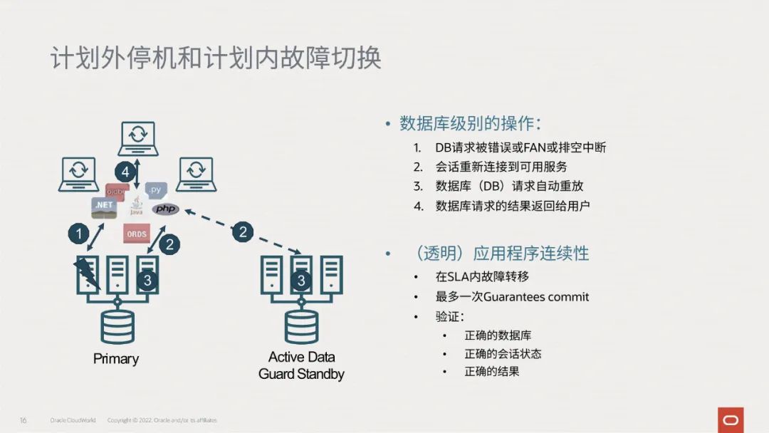 最后,我们跟大家分享一例来自真实客户的实践,该客户使用Oracle 19c 透明应用连续性功能,通过简化应用程序工程师的弹性设计,提高了整个公司的应用程序弹性: