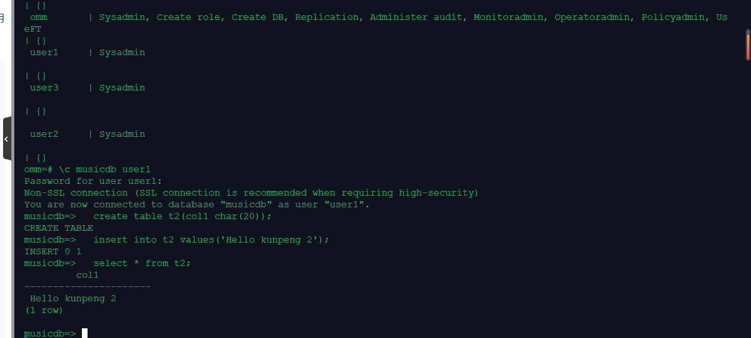 CREATE USER user3 IDENTIFIED BY 'kunpeng@1234';