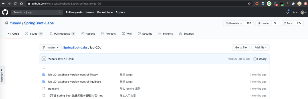 “示例代码对应仓库:lab-20-database-version-control-flyway 。