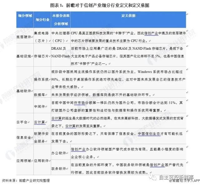 为方便研究,前瞻对于信创囊括新分领域进行了较精准定义,详细定义情况如下: