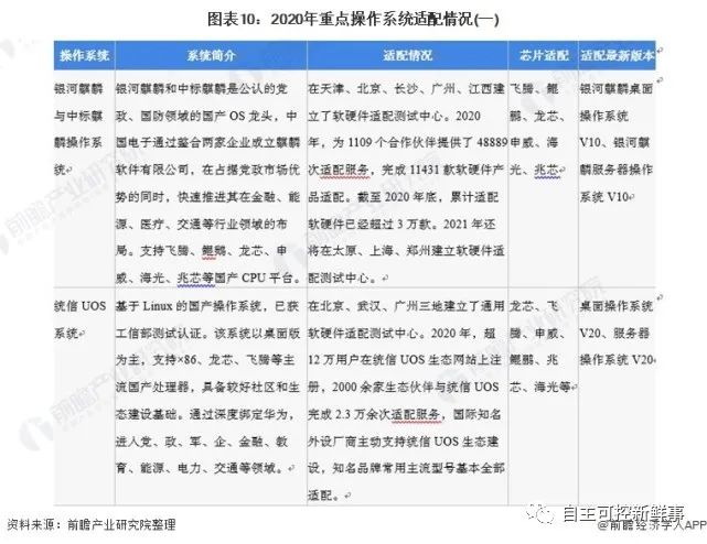 在桌面操作系统和服务器操作系统领域,中国已有部分产品投入应用,产品的兼容性和适配性得到逐步完善。从生态适配进程看,银河麒麟、统信、麒麟信安、中电普华等主流国产操作系统均已完成对联想、华为、清华同方、中国长城、中科曙光等整机厂商设备的适配,基本能兼容流式、版式、电子签章厂商所发布的办公类应用,兼容数据库、中间件、虚拟化、云桌面、安全等软件厂商所发布的数百种应用和业务。