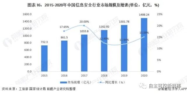 从数据来看,中国信息安全市场规模呈现逐年上升趋势,2020年中国信息安全行业市场规模达到1498.24亿元,同比增长15.09%。