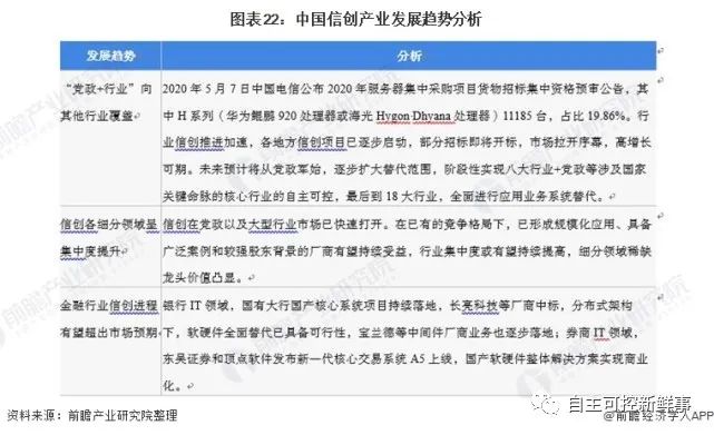信创二字来源于“信息技术应用创新工作委员会”。2016年3月4日工委会成立,是由从事信息技术软硬件关键技术研究、应用和服务的企事业单位发起建立的非营利性社会组织。信创产业,即信息技术应用创新产业。信创产业推进的背景在于,过去中国IT底层标准、架构、产品、生态大多数都由国外T商业公司来制定,由此存在诸多的底层技术、信息安全、数据保存方式被限制的风险。全球IT生态格局将由过去的“一极”向未来的“两级”演变,中国要逐步建立基于自己的IT底层架构和标准,形成自有开放生态。基于自有IT底层架构和标准建立起来的IT产业生态便是信创产业的主要内涵。