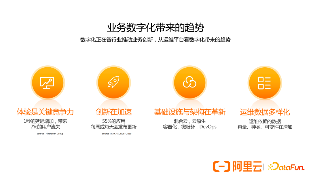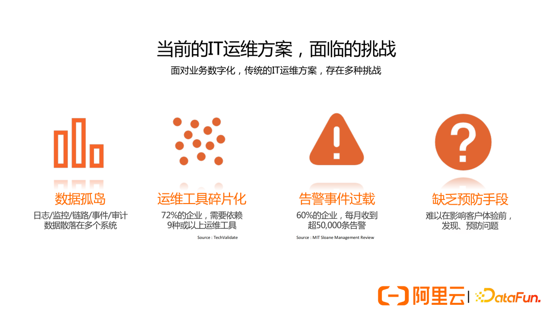 在这个阶段,运维数据包括业务数据的规模和多样性也在不断的提升和发展,与此同时,IT 系统从单体架构逐步向分布式、微服务、云原生去转变。