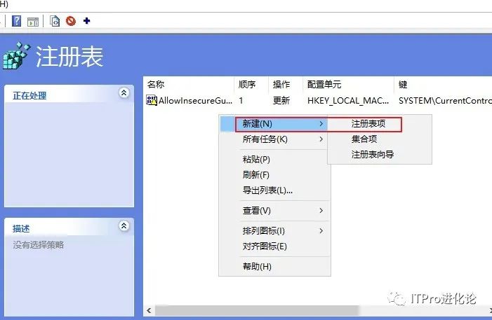 2、右击【新建】——【注册表项】,弹出【新建注册表属性】,