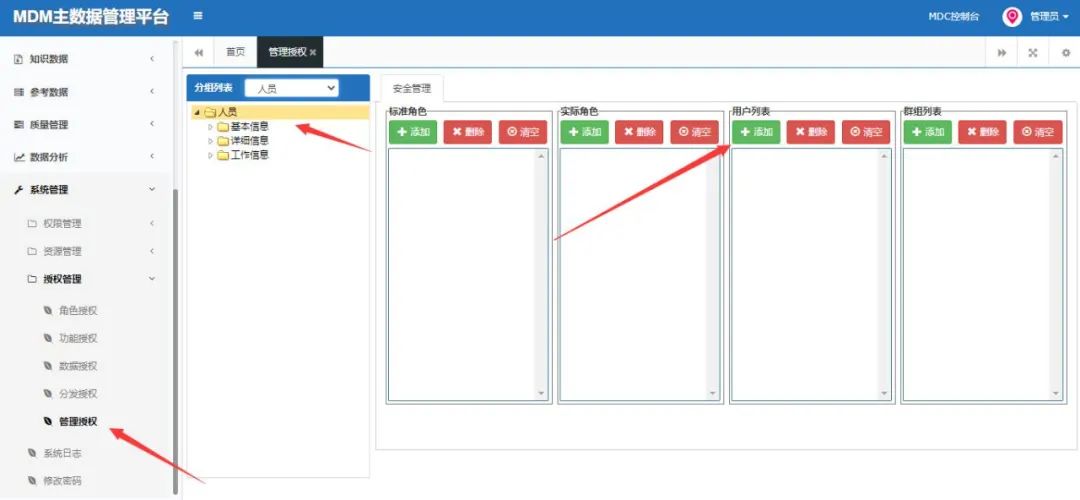 授权管理中的管理授权,是对表单属性分组和属性进行权限控制,包括控制属性分组。