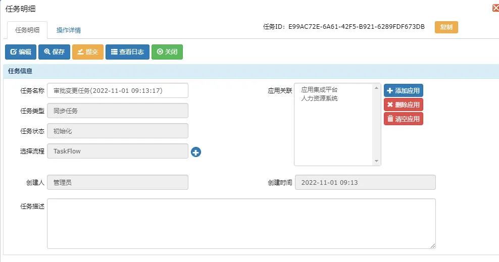 人工补全后需要直接下发给业务系统,业务审批后支持生成一个任务下发给业务系统。