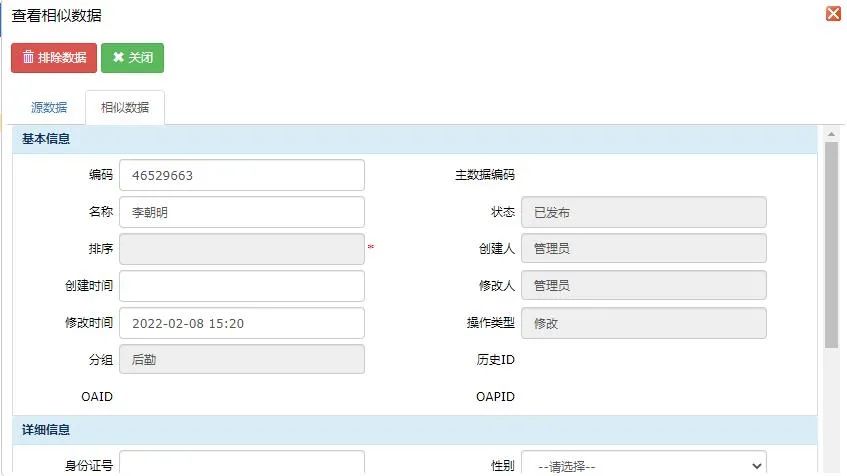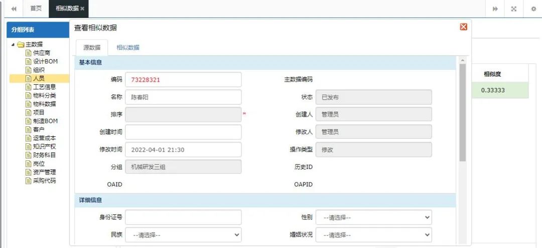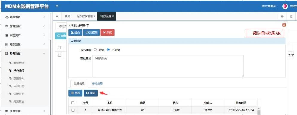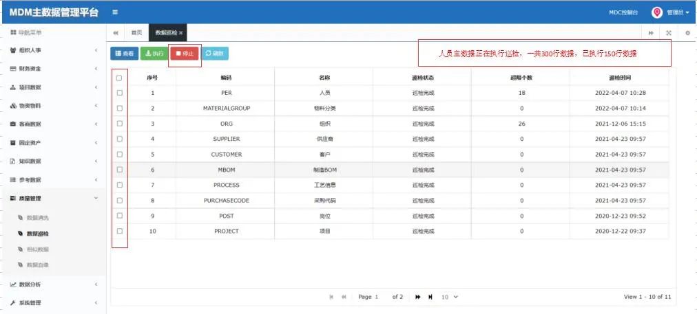 在一段时间里人为操作还是会出现一些相似数据,所以MDM支持手动巡检主数据。