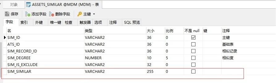 对比度需要存储到相似度表里。主数据相似度表添加SIM_SIMILAR字段,存储相似的字段。