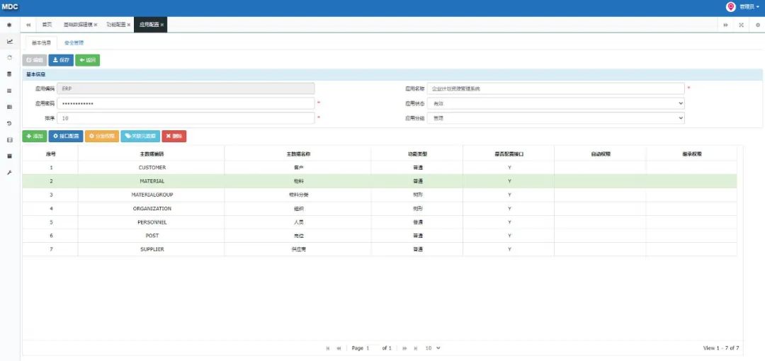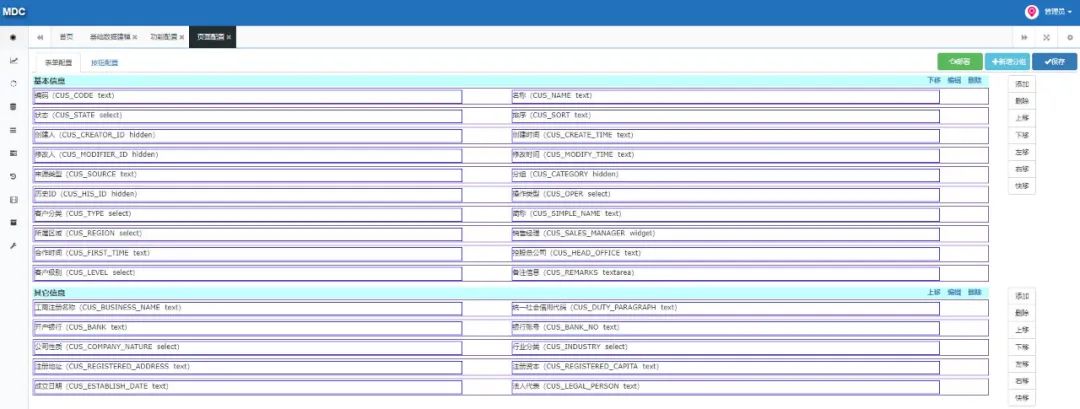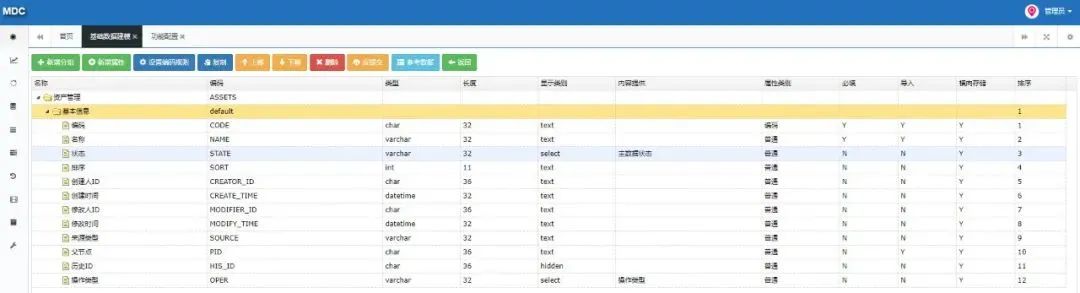 配置完成后,调整字段并提交,完成主数据数据表的构建,如图: