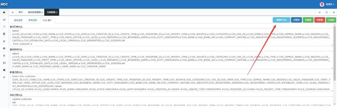 最后点击解析SQL,并保存部署,即可完成功能建模的配置,如图: