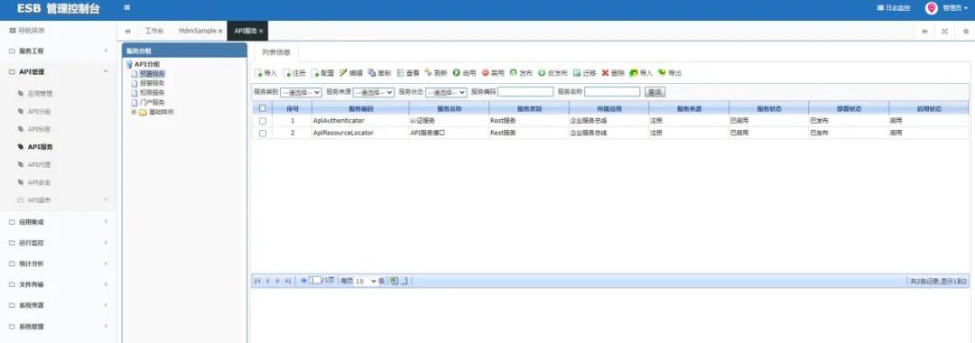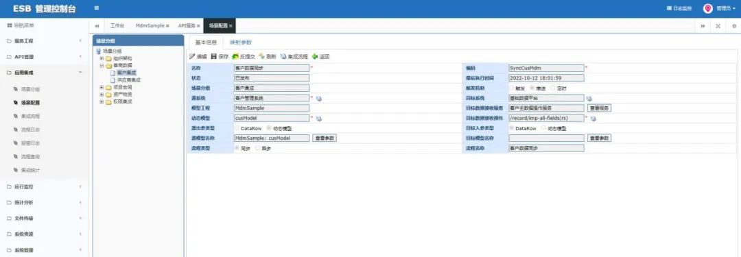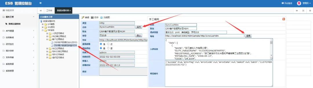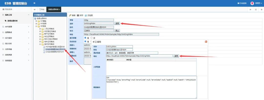 3.启动两款产品,生成MDM+ESB预置样例,重新编辑保存相关变量进行加载。