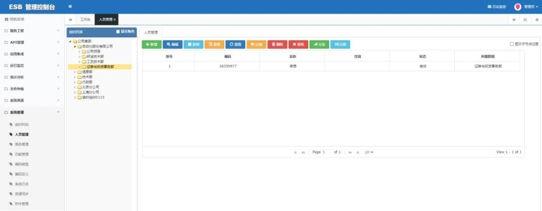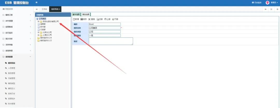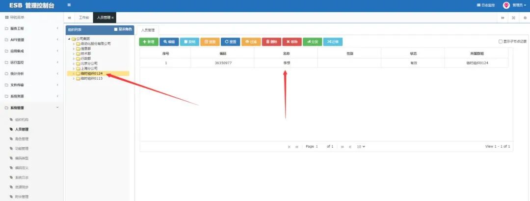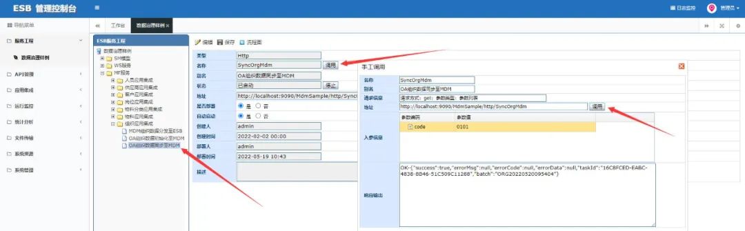 在ESB管理控制台输入需要同步的组织code,点击调用: