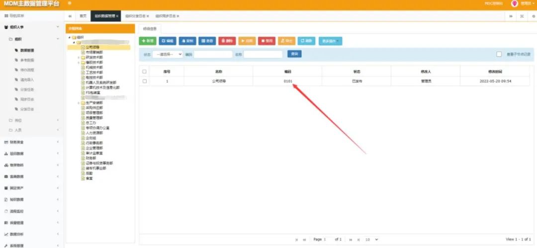 同步之后在主数据管理平台进行验证,该组织已同步至主数据管理平台: