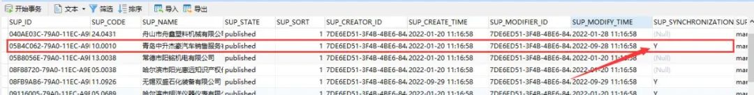 同时该数据的同步状态已被修改为已同步(Y),如图: