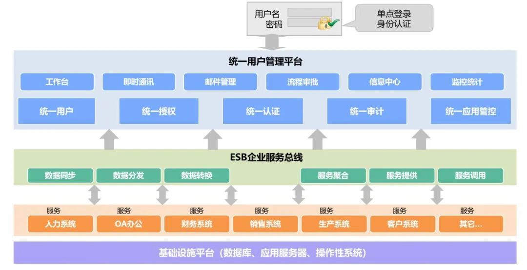 集成底座方案作为企业信息化建设的基础方案,主要是为企业建立统一、稳定、可复用的基础框架,而IDM+ESB统一5A管控方案作为集成底座方案的子方案,主要的作用是利用5A管控体系的建立打通系统边界,从而实现权限的统一。