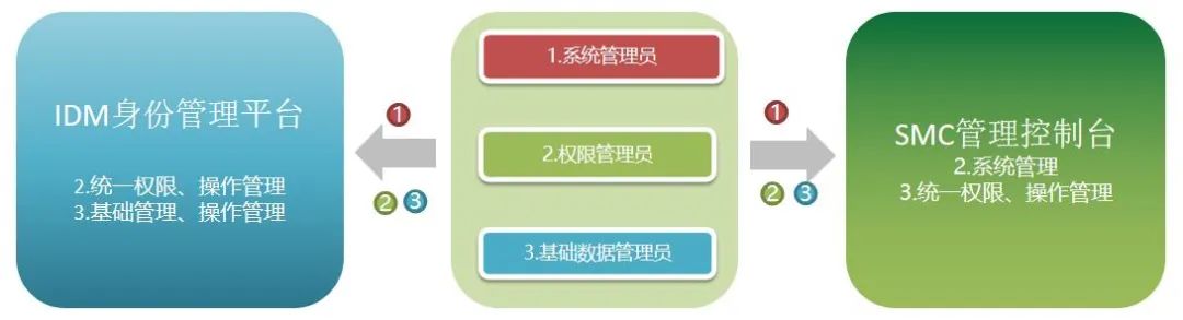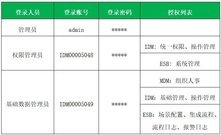 在IDM+ESB预置样例中,对于各个系统分配了不同的角色,IDM和ESB集成场景模块均分为基础数据管理员和权限管理员。