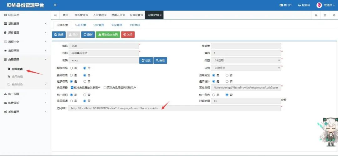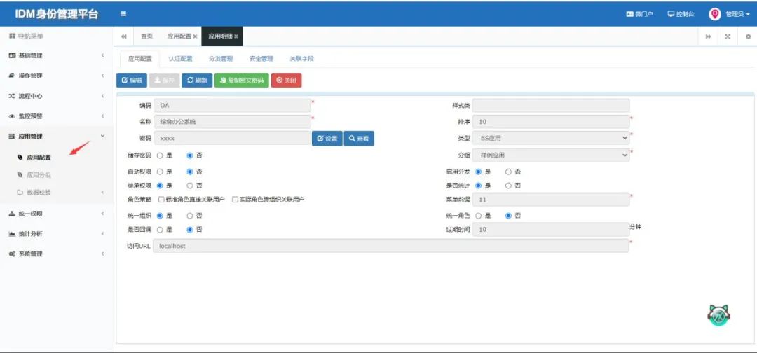 配置位置:IDM控制台->应用管理->应用配置(认证配置勾选Oauth认证)