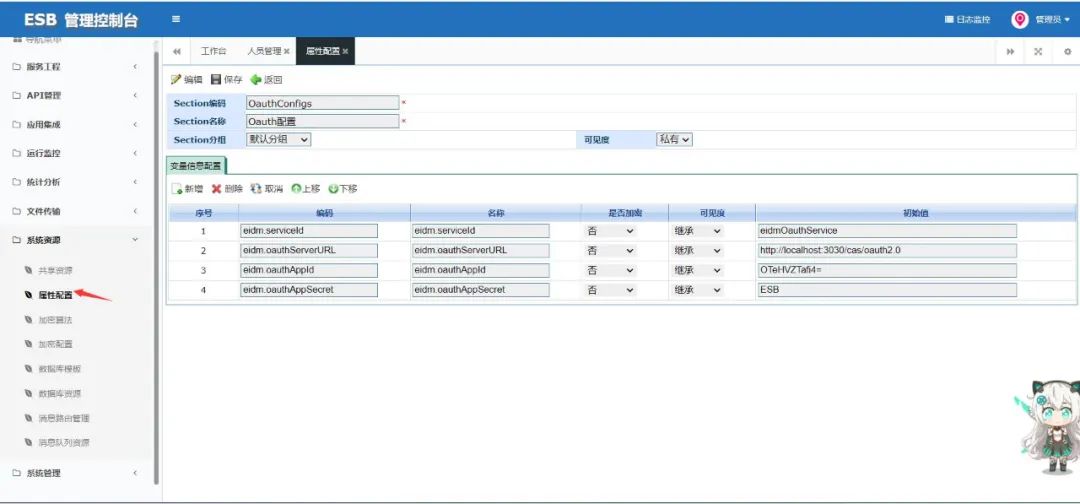 1.单点登录(ESB)使用管理员账号登录ESB平台演示cas和Oatuh两种认证方式;