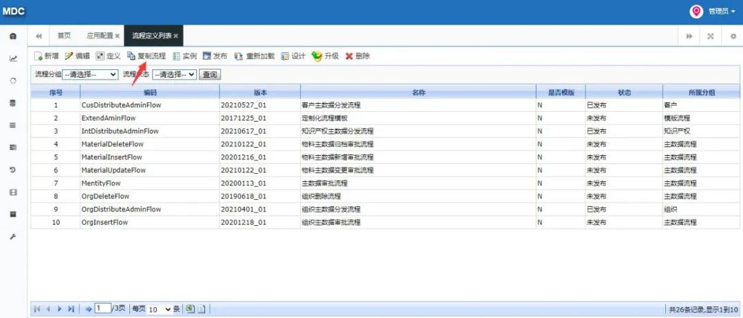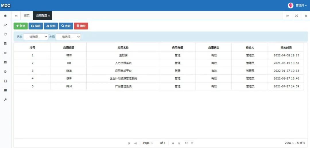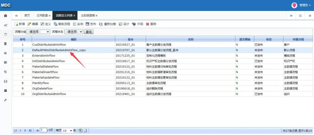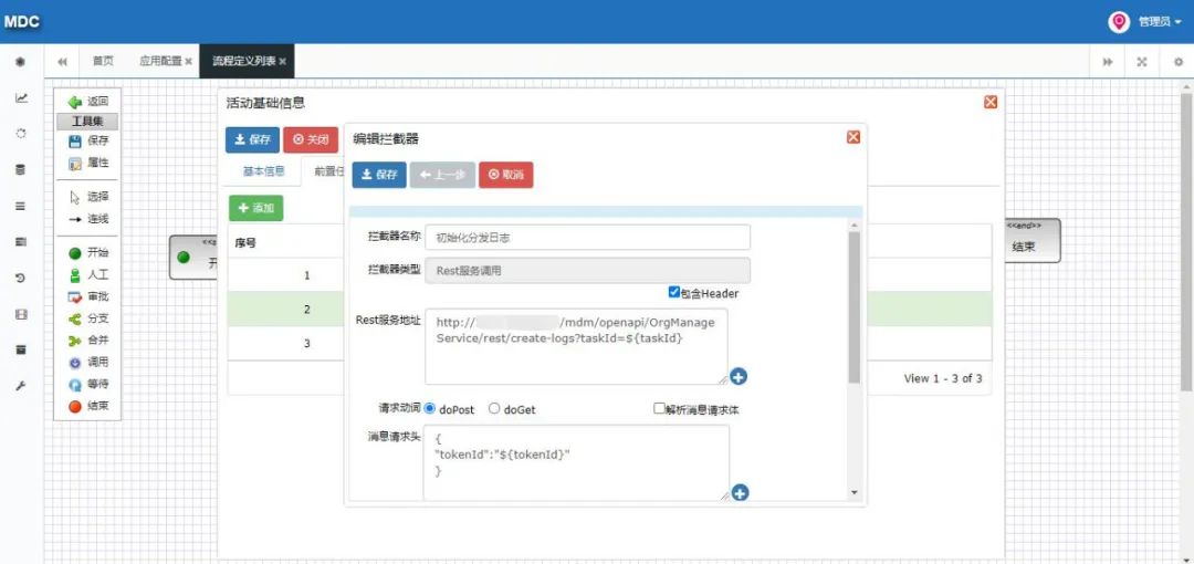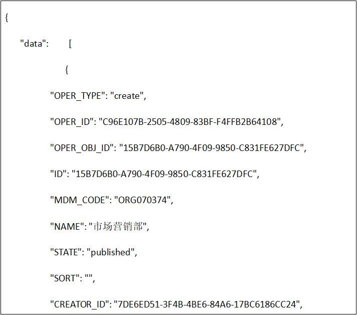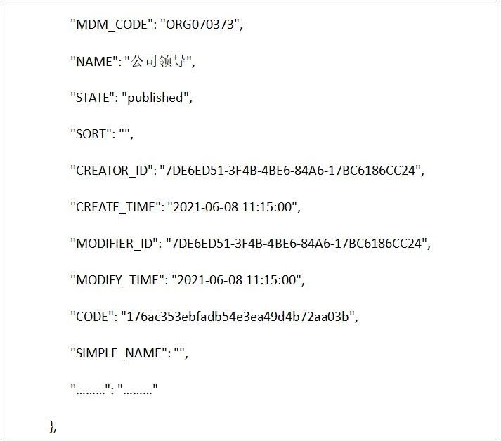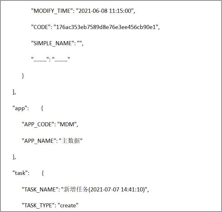 针对数据分发集成方案各业务系统需配合进行数据集成改造,主数据采用任务分发的方式保障数据的实时性,同时在数据初始化的过程中需各业务系统调用主数据全量获取接口进行数据的初始化操作,具体集成场景、集成方式以及常见问题如下。数据中台分发集成场景主要包含数据初始化以及数据的实时分发同步,每类场景需开发对应的集成流程,具体集成场景如下:1.数据初始化:各业务系统获取数据中台主数据全量组织、人员、岗位、客户、供应商、项目信息,完成系统基础数据初始化工作; 2.数据实时分发:当数据生产系统产生数据时,数据自动同步至主数据管理平台,主数据管理平台自动分发至数据接收系统中。主数据平台集成方式采用基于数据任务分发方式,主数据管理将源业务系统同步过来的一条或者多条数据打包成数据任务并生成任务ID,各数据接收业务系统提供数据接收接口,该接口请求参数为任务ID,主数据管理平台提供任务ID解析接口、接口说明资料,各系统接收接口根据任务ID解析出任务内全部数据信息并将数据同步至各系统中(也可以直接推送Json数据),同时将数据同步状态信息回写至主数据管理平台。另外在数据初始化过程中需基于主数据published接口开发数据初始化集成流程,该流程一方面是完成数据的初始化工作,同时也便于后期因某些原因导致数据接收方与数据中台数据数据不一致问题的处理。1.推送人员主数据时人员所关联的组织机构等信息因为某些原因未推送成功相关问题的处理;建议解决方案:针对于枚举类数据信息采采用Json拼接发送的方式,参考样例(红色标记)如下:2.对中台提供业务系统定义的信息,该信息用于后期各系统token认证,需提供认证用户名及密码(虚拟,并非各系统实际账户密码,只用于token认证),如果未提供由数据中台统一分配;3.基于数据中台提供数据字典标注各系统需接收的字段信息,如未提供数据中台将默认分发每类主数据全部数据字段信息。基础信息的配置主要是对分发进行字段、系统以及分发权限等进行授权,例如,例如分发财务系统则对该系统需要的某几个重要的字段进行添加字段信息即可,不需要将全部字段信息分发至该系统中,具体配置如下。在主数据应用管理—应用配置模块,将需要分发的业务系统进行注册,例如注册财务系统。例如要分发物料主数据的信息,双击打开上述注册的应用系统,添加主数据。接下来配置对应系统需要的元数据字段,在后续通过task接口获取数据时就只能查出当前配置的字段信息。在配置完成分发字段需要对当前应用系统进行授权,授权功能模块在数据的分类数据建模。接下来在左侧下拉选找到物料主数据,在分发权限行点击添加按钮,增加分发业务系统权限。本章主要针对标题自动分发场景,自动分发主要时对数据同步集成流程进行调整的基础上为其提供数据审核BPM流程,在审核的节点上调用外部数据接收的接口,将任务的taskId传给外部接口即可,其中还涉及一些全局变量的配置以及流程的配置,具体详见下文。在主数据管理平台流程建模—流程定义列表点击“复制流程按钮”,可以复制主数据定义好的模板。在模板变量配置模块第一个输入框内输入主数据的编码,在第二个输入框内输入主数据大写编码,样图如下:选择流程点击编辑按钮,调整流程的编码、名称及分组,分组调整到对应主数据下。跟据编码或者名称找到刚才所复制的流程双击打开,流程情况如下:修改其中调用节点即可,其它节点已配置完成无需修改,调用节点示例图如下:修改任务设置中的获取许可、初始化分发日志及接收任务接口调用三个节点。1.获取许可调整:在获取许可处点击编辑按钮,调整appCode和appPwd,此处配置依然和“流程模板复制”标题中提到的录入参数一致。2.初始化分发日志调整:调整当前分发主数据的服务地址,下图举例组织主数据地址:主数据的每个服务可以通过主数据openAPI查看,地址如下:3.接收任务接口调用调整:此处接口是接收系统提供的外部接口,入参为taskId,在此处直接URL拼接任务参数即可。本次数据分发集成数据中台针对每类主数据均提供一个Rest服务,服务中包含数据全量获取接口、任务解析接口、日志回写接口等,具体服务接口地址如下:本次数据分发的接口展示均已组织主数据为例进行说明,组织主数据服务调用地址如下:可以通过SaopUI、Postman等工具进行调用查看接口。注意:本次提供服务IP地址后续会在客户迁移完成机房后进行调整,建议相关系统将IP地址配置成变量的形式,便于后续更改。在任何应用系统调用主数据时都需要获取一个密匙,这个密匙为tokenId,其调用服务如下:全量数据接口主要针对本期数据接收相关系统进行数据初始化所用,接口地址如下,注意只能获取主数据已发布的数据:注意:各板块全量数据接口出参均按照各模块需求配置出参信息,所以各系统出参均不相同。在主数据向接收系统传入taskId时可以通过task进行数据解析,接口地址如下:出参(Json),其中data参数是打包好的数据,可以通过key值解析:注意:各板块任务解析接口出参均按照各模块需求配置出参信息,所以各系统出参均不相同。在业务系统解析任务同步数据成功后需要返回成功或者失败日志到主数据内。接口地址为:通过本次主数据同步、分发相关操作让我对主数据治理方案有进一步了解,也