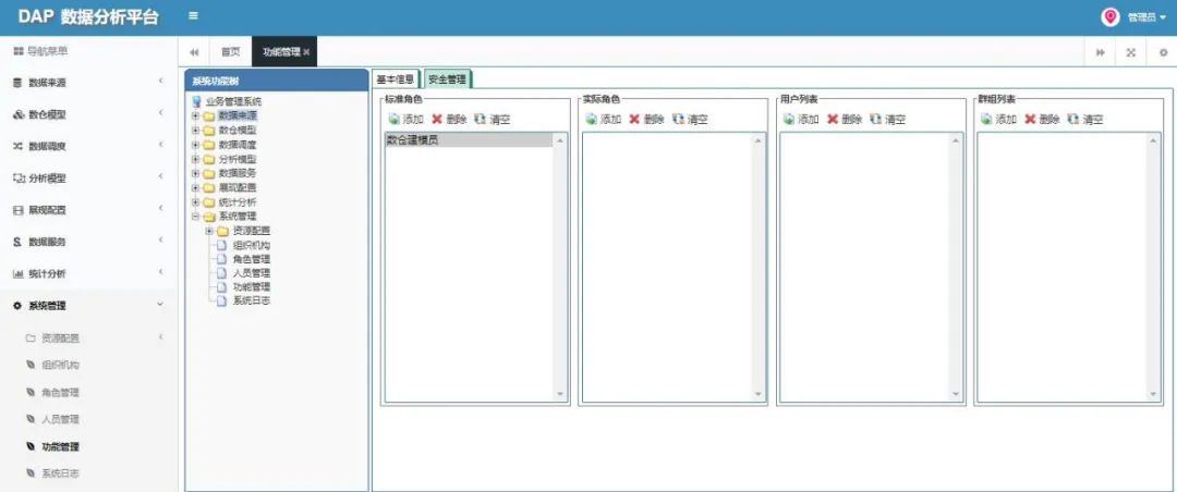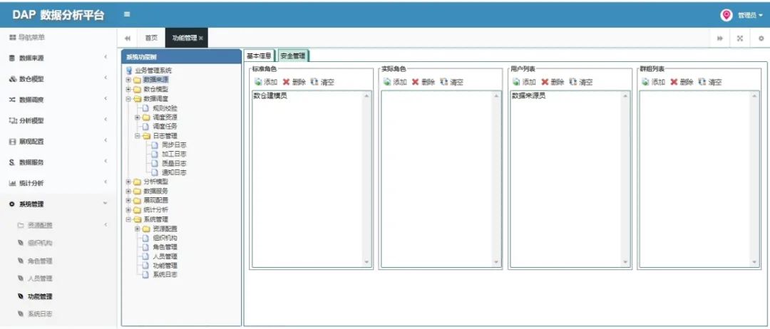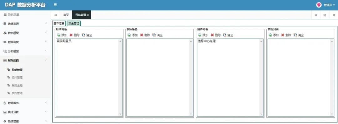 DAP数据分析平台通过授权管理进行角色授权、配置授权、业务授权实现三权分立,不同的用户能看到不同的导航页面,能够看到不同的可视化分析页面,这样才能使企业分工明确、各司其职,才能让企业发展得更好。