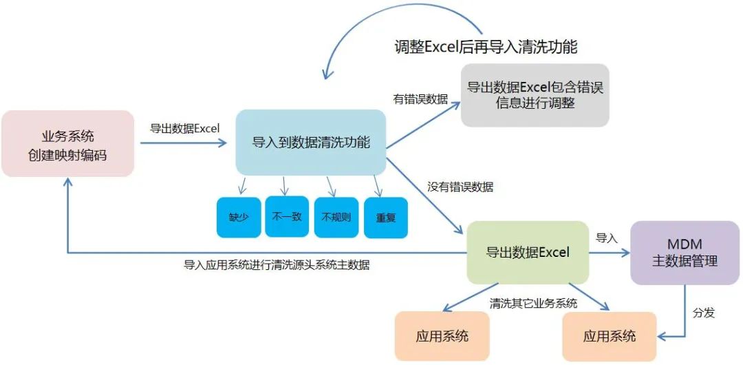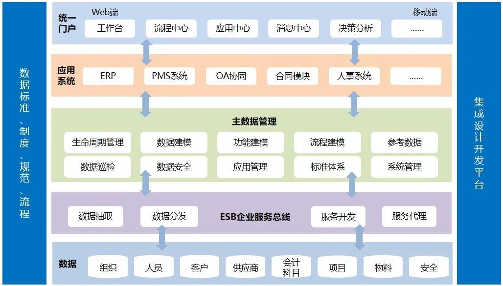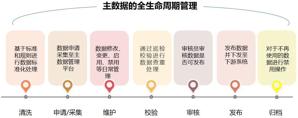 随着数据源的增加,准确、及时的信息需求就会变得越来越迫切。保持数据定义是最新的,并一致地管理数据变得越来越难,企业各部门都使用相同的数据更是难上加难。为了应对这一挑战,企业主数据管理应运而生,主数据管理项目怎样实施落地备受大家的关注。伴随着企业信息化进程的不断深入,企业IT应用的业务场景越来越复杂,来自跨业务、跨部门和跨系统的业务连贯性需求越来越迫切。许多企业对系统数据的一致性、完整性和准确性提出了更高的要求,纷纷将目光投向主数据管理产品,使得主数据管理市场得到了迅速发展。然而,主数据究竟是什么呢?主数据是指满足跨部门业务协同需要的,反映核心业务实体状态属性的基础信息。举个例子,公司的员工信息,存在于很多业务系统里,比如人力系统、财务系统、OA系统,以及考勤系统等,但每个系统所需要的信息可能不一样,财务系统需要员工开放信息,比如从哪个银行开户,账号是什么,这样方便打款;人力系统可能只是需要员工的一些入职信息。这样的员工信息就属于主数据,它在很多企业业务系统被使用,同时还能反映这个员工本身的一些属性。除此之外产品、物料、客商、客户、供应商也属于主数据。1.唯一性:在一个系统、一个平台甚至一个企业范围内同一主数据要求具有唯一的识别标志(代码、名称、特征描述等),用以明确区分业务对象、业务范围和业务的具体细节。2.共享性:主数据特征会被作为业务流程的判断条件和数据分析的具体维度层次,因此需保证主数据的关键特征在不同应用、不同系统中高度一致共享,形成统一规范 。3.稳定性:主数据作为用来描述业务操作对象的关键信息,在业务过程中其识别信息和关键的特征会被交易过程中产生的数据继承、引用、复制,但主数据本身的属性通常不会随交易的过程所被修改。4.有效性:只要该主数据所代表的业务对象仍然在市场中继续存在或仍具有意义,则该主数据就需要在系统中继续保持其有效性,通常贯穿该业务对象在市场上的整个生命周期甚至更长。不是企业内部所有的业务数据都是主数据,主数据的范围是指在企业各个系统间共享的必要的业务数据,简单来说就是在处理业务中被重复使用的数据,企业典型的主数据类型一般包括供应商、物料、产品、客户、组织、人员、财务等数据。此外,根据业务需求,关键基础数据也经常纳入主数据的管理范畴。主数据管理平台作为主数据治理工具,建立数据治理标准,简化数据清洗工作,将内外部基础数据统一治理整合,解决数据不精确问题,保证企业内部数据的一致性、准确性、真实性,通过数据发现问题、反馈问题。企业数据总线基于平台协同功能,与主数据管理工具相互协作,提供数据的同步与分发,共同实现主数据治理,同时实现不同系统间服务、数据、信息的全面集成。基于云管理平台搭建主数据管理平台,可以提升部署效率,特别是针对集群式、高可用部署,云平台具有天然的优势。云平台部署模式在满足常规部署的同时,也提供了对于服务器资源的监控、运维的辅助,能协助运维人员快速进行服务器升级、扩容、启停等操作,降低运维难度。主数据体系架构工作分为三个阶段:第一阶段是规划设计阶段,完成管控组织体系设计、管控流程体系设计,建立主数据管理组织、岗位、人员,落实各级流程和职责分工;第二阶段为标准化阶段,简历各类主数据模型、业务标准和主数据标准,根据主数据类型简历相关专业团队中等专业性常态化组织,建立集中、统一、科学、规范的统一编码和标准属性库,对现有分散的主数据和系信息系统中统一应用标准化主数据进行清理;第三阶段为系统集成阶段,是最终建立集团企业内集中的主数据中心,为决策支持系统提供关键基础数据应用,同时建立定期评估、应用反馈的、机制,对主数据体系进行持续优化。梳理识别主数据,并明确数据流向是主数据管理的重点。首先着手进行主数据的调研,一般需要从项目的整体规划和实际业务出发,梳理主数据的具体范围,以及每一类主数据的编码、属性、来源、目标、集成等内容,具体包括以下内容。调研过程中要充分了解客户的核心业务,规划具体的建设内容和建设范围,梳理业务时结合现有的业务系统进行分析,明确业务运行过程中可能涉及的主数据,明确项目需要建设的主数据类别,既要考虑组织、岗位、人员等人事相关基础数据,同时也要考虑根据实际业务建设一些重要的主数据,支撑业务的同时也为后续深度主数据治理奠定基础。主数据的编码规则一般有两种情况:一是由源头系统提供,主数据管理平台直接引用源头系统编码,二是在主数据管理平台配置编码规则,在数据同步到主数据管理平台时自动生成。第一种直接复用源头系统,主数据管理平台无需进行处理,但是需要源头系统保证编码规则的唯一性、准确性;第二种主数据管理平台需要配置编码规则,可以保证唯一性、准确性,但是在同步时需要将编码回写源头系统,二者各有优势,在实际项目中可以根据实际需要灵活选择。参考数据由业务系统提供,一般由源头系统提供,主数据管理平台参考进行配置,同时由于各个系统参考数据的定义是不同的,所以涉及数据下发时,需要明确下游系统的参考数据定义方式,并在主数据管理平台进行关联配置。明确主数据来自于