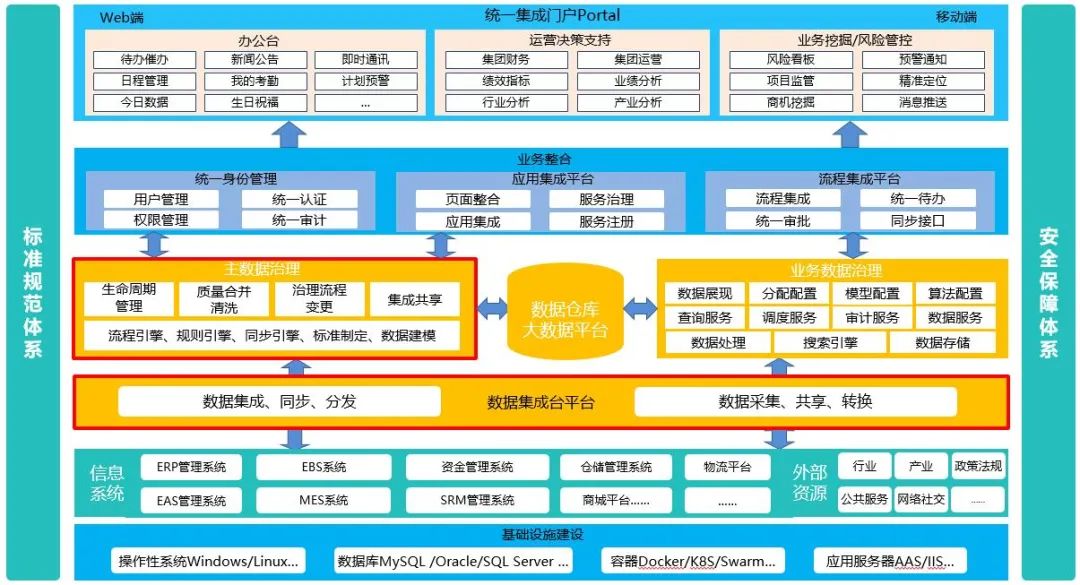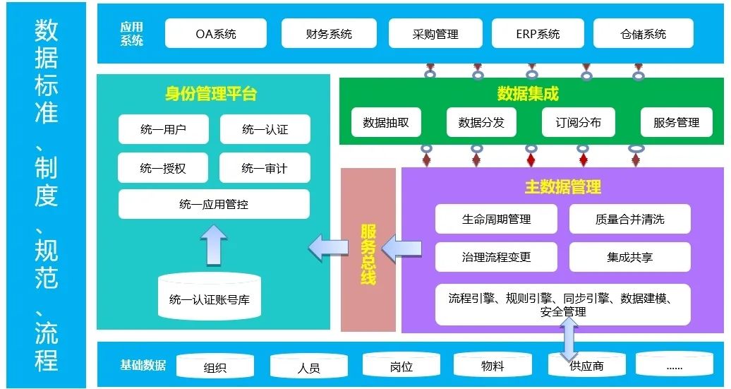 企业业务系统的绝大多数是伴随着业务发展来建设的,但随着业务的不断发展,单一系统很多时候难以支撑企业业务的闭环,而多系统共同协作的时候往往又会出现系统割裂、数据难以统一的问题,所以通过数据治理保证基础数据一致是系统建设与集成的关键内容。而保证基础数据一致的核心内容就是数据清洗和编码统一,数据清洗保证了存量数据的统一和标准化,编码统一保证了增量数据的一致性,从而是上下游系统具备标准、统一、完整的基础数据。