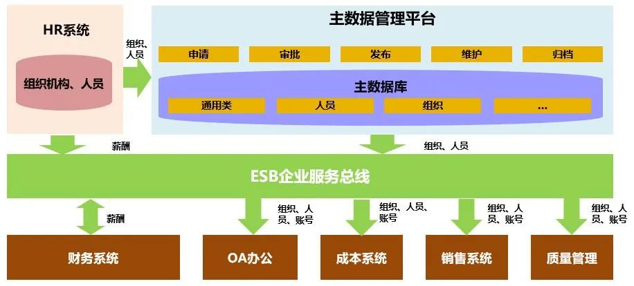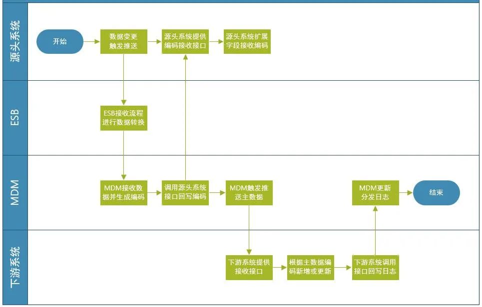 MDM主数据管理平台就是为了满足企业基础数据治理的需求,实现全生命周期的基础数据管理,通过主数据的管理与集成打通和上下游业务系统的联系,从而保证基础数据的一致性、完整性、准确性和全面性。而对于主数据治理的项目而言,主要的集成内容包括:历史数据的清洗、编码规则的制定、系统数据的集成,而数据清洗和编码规则又是保证集成准确性的前提和基础,所以本次主要针对主数据的清洗和编码集成进行梳理。MDM主数据管理平台主要是针对企业的主数据进行统一管理维护,实现全生命周期的主数据管理,同时主数据平台会和上下游系统进行集成,实现主数据的同步分发,从而保证主数据的统一准确。从业务的角度而言,MDM主数据平台一般不会直接参与企业的具体业务,MDM平台更多的是从信息化和企业数据的角度对留存在各个业务系统中的基础数据进行整合、清洗、统一,从而保证基础数据的一致。如图企业的基础数据包含组织、人员、客户、供应商、项目、物料等一系列通用的、可共享的数据,而基于主数据平台可以实现这些数据集中管理维护。根据企业实际业务的情况,不同的主数据会分布在不同的系统中,而MDM主数据平台就是将分散在各个系统的主数据抽取出来,并进行数据清洗、合并、校验,最终在主数据平台落地,并根据实际需要将清洗校验后标准主数据分发给下游系统。由于MDM主数据平台的实际应用更多地体现在数据层面,通过数据治理实现基础数据的统一,并不会直接参与企业的实际业务,所以很难直接体现平台和项目价值,所以在实际项目中,MDM平台往往都会和其他产品组合形成标准的集成方案,并通过集成业务系统实现主数据治理效果的有效落地和展现。首先MDM平台通过ESB企业服务总线和业务系统进行集成,实现与各个业务系统的主数据同步、分发,实现各个业务系统基础数据的统一,同时治理后的基础数据可以结合DAP数据分析平台构建数仓,或者结合IDM统一身份管理平台实现5A安全管控。MDM主数据平台在实际项目中主要的集成内容在于和各个业务系统平台结合满足具体业务场景,典型如主数据治理、业务集成、集成底座、数据中台等。而在集成过程中,主要的集成内容包括:主数据清洗、主数据同步、主数据分发等。1.主数据清洗:一般而言的主数据清洗主要是针对业务系统存量数据的清洗标准化,并将清洗后的数据导入MDM主数据平台,由于单一系统的局限性,历史留存的主数据往往缺少统一标准,难以做到集成共享,跨系统应用,通过数据清洗才能保证数据的统一一致,全局共享;2.主数据同步:主数据同步主要是针对增量数据的同步,一般是从源头系统同步至MDM主数据平台,在同步过程中,主数据的编码规则、校验规则等会发挥作用,对同步的数据进行检查处理,保证同步进来的数据是标准的;3.主数据分发:主要是将MDM平台治理后的标准数据下发至下游系统,保证主数据同源,下游系统、MDM平台、上游系统采用同一套标准主数据,从而保证业务的准确性和集成性。在实际项目中MDM主数据平台除了可以结合ESB完成主数据治理的场景外,MDM还可以集合ESB、IDM、DAP等产品构建业务集成、集成底座、数据中台等方案,满足不同的业务需求。主数据治理方案以MDM平台为核心,通过MDM完成主数据的全生命周期管理,保证主数据的全局同源、一致、统一,同时结合ESB企业服务总线实现主数据的同步分发。作为主数据治理工具,建立数据治理标准,简化数据清洗工作,将内外部基础数据统一治理整合,解决数据不精确问题,保证企业内部数据的一致性、准确性、真实性,通过数据发现问题、反馈问题。基于ESB的平台协同功能,与主数据管理工具相互协作,提供数据的同步与分发,共同实现主数据治理,同时实现不同系统间服务、数据、信息的全面集成。业务集成方案以ESB的集成能力为主,通过MDM平台实现主数据同步分发,保证基础数据一致。业务集成包括的主要内容有两部分:一是主数据集成,二是业务单据集成,其中主数据集成是业务单据集成前提和基础。主数据集成以MDM为主,将业务系统的主数据同步至MDM平台并基于MDM进行下发;业务单据集成以ESB为核心,将业务系统的业务单据通过ESB应用集成推送至下游系统,从而实现跨系统的单据集成。集成底座方案是一个综合方案,包括了MDM、IDM和ESB三个产品,所以集成底座实际上是包含了主数据治理(MDM+ESB)、统一集成平台(ESB+MDM)和统一身份5A管控(IDM+ESB)三个子方案。1.MDM+ESB主数据治理:以MDM为核心实现各个业务中主数据同步到MDM平台,再将治理后的数据分发到下游系统,是业务集成、统一认证、数据分析等场景的实现基础;2.ESB+MDM统一集成平台:主要目的是通过集成底座平台打通系统间业务单据集成的难题,主要面向各个系统的业务数据,如财务单据、财务凭证、收/付款单、入库/出库单等。3.IDM+ESB统一身份5A管控:主要将组织、角色、用户等信息经过MDM平台治理后,同步到IDM平台,基于同一用户信息完成统一认证;根据需求在IDM平台进行业务角色、权限角色的统一管理与权限分配,再通过IDM分发到对应的业务系统中,实现权限的统一。数据中台方案中以MDM、DAP、ESB三个核心产品为基础,在完成主数据治理的同时构建数据仓库,实现基于数仓的业务主题、指标、数据分析。数据中台是将治理后的主数据以及系统中的业务数据