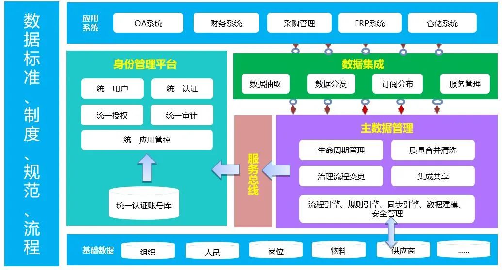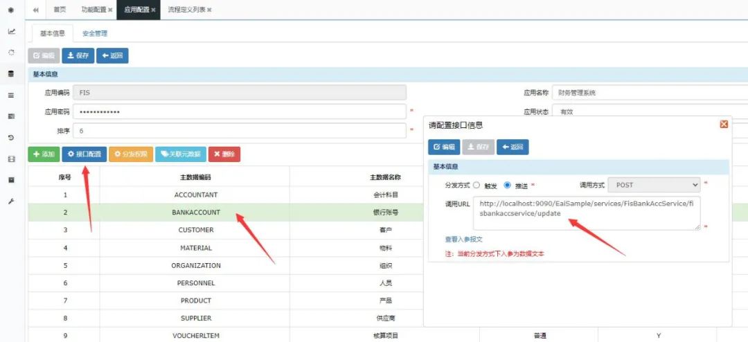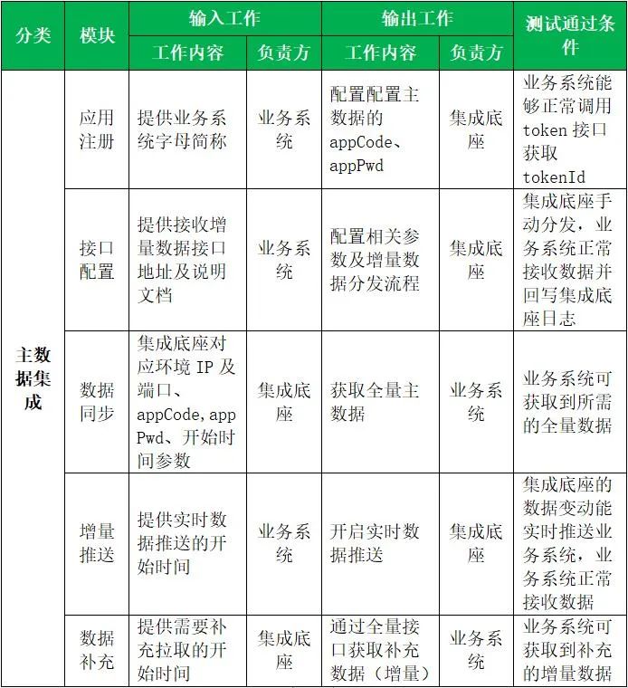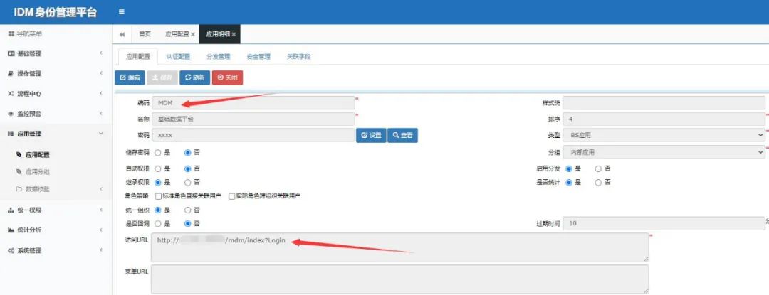 集成底座作为企业信息化的基础架构平台,主要满足5A管控、主数据治理以及业务集成等需求,通过基础架构的搭建,为企业的信息化建设提供一套全面稳定、标准统一、易于复用、灵活调整的基础环境。集成底座主要包括三款核心产品:IDM身份管理平台完成5A管控,实现统一用户、统一认证、统一权限、统一审计和统一应用;MDM基础数据治理平台完成基础数据治理,保证基础数据的同源一致;ESB企业服务总线主要完成业务集成,并支持MDM平台的主数据同步分发和IDM的统一用户集成。在实际项目中针对不同系统、不同需求都会存在具体的处理与配置方式的区别,如MDM平台主数据的应用配置以及分发主数据类别范围和字段范围,IDM统一认证的系统注册和认证信息配置等。集成底座方案包括IDM、MDM、ESB产品,并且通过各个产品的集成整合形成了一个整体,解决企业信息化基础建设的难题,同时借助产品的灵活特性,基于各个子方案满足更多的业务场景需求。集成底座方案,实际上基于IDM、MDM、ESB产品实现5A管控、主数据治理、业务集成等多个方面的需求,其中基于IDM平台实现5A管控,结合ESB和MDM完成组织、角色、用户、权限的统一;基于MDM平台完成主数据治理,结合ESB实现主数据的同步分发,保证各个业务系统基础数据的一致;业务集成以ESB为主,通过ESB的服务治理实现跨系统的面向服务的业务数据集成,并通过MDM平台保证业务数据集成时基础数据的一致。集成底座的业务场景主要包括5A管控、主数据治理、API治理、应用集成等。1.5A管控:以IDM为主,通过ESB实现组织、角色、用户、权限等同步,实现基于IDM平台的统一用户、统一认证、统一授权、统一审计、统一应用管控;2.主数据治理:以MDM平台为主,通过ESB实现从源头系统到MDM、MDM到下游系统的同步分发,实现各系统基础数据的同源一致;3.API治理:以ESB平台为主,将IDM、MDM,以及各业务系统的服务接口注册到ESB平台,并通过ESB实现API安全、监控、预警、测试等功能;4.应用集成:以ESB平台为主,主要是通过ESB实现跨系统的服务对接,实现系统单据、业务数据的集成,满足异构系统集成对接的需求,同时借助MDM实现的基础数据治理保证业务对接过程中基础数据的一致。集成底座与实际业务系统对接时,典型的集成场景包括5A管控、主数据集成、业务集成。其中5A管控包括统一用户、统一认证、统一权限、统一审计和统一应用,除了统一权限由于需要深入业务系统的权限体系,同时由于各个系统权限控制体系的区别,在实际项目中需要具体考量外,其他内容基本都是集成底座必做的内容。主数据治理主要针对企业基础数据进行治理,由于需要为IDM统一用户提供数据,所以组织、岗位、人员是集成底座必做的主数据,此外根据实际业务需要可以扩展客户、供应商、物料、银行账户等其他类主数据。业务集成主要通过ESB的API治理实现,将业务系统接口注册到ESB中,再通过API代理、应用集成等方式实现跨系统的业务单据传输,如单据集成、凭证集成等。集成底座和业务系统的对接是有标准的流程和模式的,在整个过程中需要双方的有效配合,提供好相关的接口、数据、参数等,具体的对接过程大致如下:IDM的5A管控主要是统一用户、统一认证、统一授权、统一审计、统一应用管控,在实际项目中统一用户、统一认证、统一应用是重点,而统一审计主要是对IDM平台的数据和管理进行监控审计,所以一般不需要进行上下游系统对接,而统一权限由于深入系统权限,各个系统区别较大,所以不作为通用内容进行具体说明。在集成底座项目中,由于通过MDM进行主数据治理,而人员主数据又是最基础的数据类别之一,所以在集成时,通常直接通过MDM分发人员,IDM作为MDM的下游系统接收用户,如果在实际项目中有特殊需要需要从IDM分发人员,则再配置IDM的分发。由于IDM、MDM均是集成底座的一部分,内部集成不做具体说明,只针对IDM的分发进行说明:1.首先IDM的用户分发基于内置的BPM实现,所以需要配置BPM的分发流程;2.分发方式采用推送方式,所以在BPM工作流中只配置一个调用节点,在调用节点中配置IDM的推送分发流程:3.同时在应用管理中注册下游系统,并配置下游系统的数据接收接口:统一认证的配置过程,有IDM平台提供对接标准,以下游系统为主进行认证配置,IDM主要提供CAS、OAuth、接口三种认证方式。2.业务系统配置样例:包括为web.xml的调整以及拦截器的开发样例,一般会和改造说明放在一起;注:为了保证系统认证时IDM能有效记录认证日志,在IDM平台需要注册业务系统信息,并配置系统访问地址(由业务系统提供)。2.redirect_uri:IDM注册的系统访问路径,由业务系统提供访问地址,IDM注册到平台3.client_secret:IDM注册系统的密码(密文)。2.加密策略:IDM接口认证的加密策略,业务系统根据加密策略进行密码加密后传输。IMD的应用管控主要体现在应用管理模块,在IDM进行集成的过程中,统一应用贯穿始终,包括用户集成时获取tokenId,统一认证时注册应用,用户、权限分发时的分发范围控制等。所以在项目集成时,所有和IDM集成的系统都需要在IDM平台进行注册,并注意控制密码的强度。http://IP:PORT/idm/services/OpenApiAuthticater/login/authticatehttp://IP:PORT/idm/openapi/EmpDispatch/rest/emp/recordhttp://IP:PORT/idm/openapi/DataProvide/rest/record/task-pagehttp://IP:PORT/idm/openapi/BaseDispatchReceive/rest/record/dispatch-loghttp://IP:PORT/cas/oa