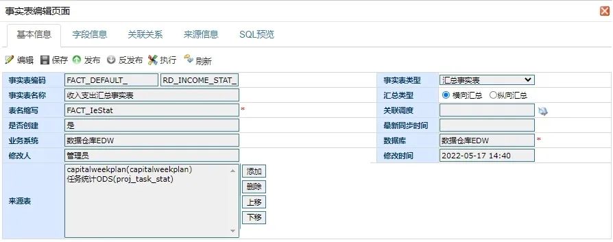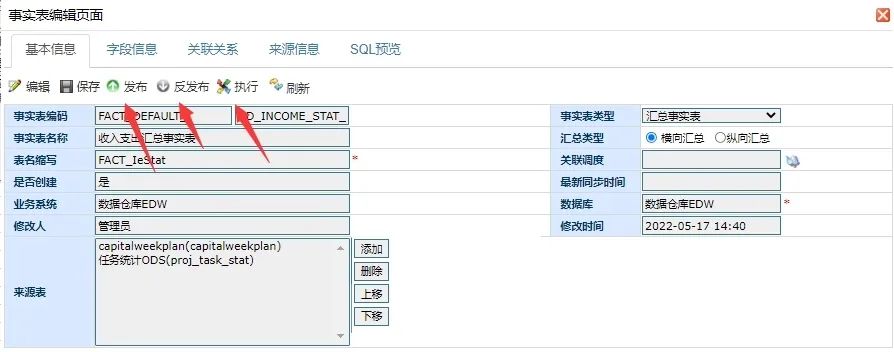 数据分析,无论是现在的互联网企业,还是传统型企业,都需要数据分析。公司需要决定一些方向或者推出某种新型产品,就需要数据分析来将凌乱的数据进行整合汇总,从而判断出具体方向。通过不同的产品组合来解决不同公司面临的企业困难,帮助企业范围内建立起了一整套统一、规范的IT架构标准体系,包括数据规范、服务规范、流程规范、界面规范、接口规范等,彻底解决了当前面临的信息孤岛问题,有利于提高效率、降低成本。我们数通畅联的所有产品都是通过K8S云平台进行部署搭建产品环境,通过不同的产品组合方案来解决企业面临的不同信息化困境,帮助企业完善信息化发展。DAP数据分析平台通过与ESB应用集成平台结合使用场景主要是通过配置调度任务,通过执行调度任务调用ESB数据同步流程,实现数据的采集、抽取、转换、传输、调度等操作,基础数据为DAP提供同源并标准的、一致的数据,保障数据分析分析数据的准确性。数据分析平台是一款能够高效存储、计算、分析并处理海量数据的数据分析产品,能够真实、准确、清晰、有效地将企事业内部及行业外部相关数据进行可视化展现,帮助企事业提升行业洞察力,加强决策力,从而提升整体竞争力。1.数据来源(应用系统定义、数据源头配置、ODS数据定义)数仓模型。2.数仓模型(业务主题、指标配置、维度配置、事实配置、模型配置)。3.数据调度(规则校验、调度资源(同步资源、加工资源)、调度任务、质量日志、调度日志(同步日志、加工日志)、通知日志)。4.分析模型(数据集配置、立方体配置、多维度分析、业务类报表)。5.展现模型(导航管理、组件管理、展现主题、装饰管理)。6.统计分析(数据地图、质量分析、血缘分析、影响分析)。7.系统管理(组织管理、角色管理、人员管理、功能管理、编码类型、编码管理、系统日志)。事实表功能分为基础事实表和汇总事实表,基础事实表来源是ODS中间库并且可以与维度表关联,汇总事实表来源是基础事实表或者汇总事实表。本篇文档主要是事实表的汇总计算,事实表计算分为纵向汇总和横向汇总,纵向汇总是通过聚合函数SQL语句,纵向汇总事实表通过ESB结合调用DAP接口创建ESB预制的集成流程进行数据同步,横向汇总是通过汇总配置实现字段间的表达式计算。事实表的汇总计算,事实表计算分为纵向汇总和横向汇总,纵向汇总是聚合函数计算,横向汇总是字段表达式计算。基础事实来源是ODS和维度表,汇总事实表来源是基础事实表和汇总事实表,通过基础事实表进行聚合函数生成对应SQL语句,再通过ESB流程实现数据同步。通过横向汇总配置功能,配置出字段之间的表达式,再进行二次汇总计算,所以汇总计算类型分为纵向汇总、横向汇总。纵向汇总事实表与ESB结合生成集成流程,实现数据同步,所以需要聚合函数SQL,事实表预制便捷的配置,通过事实表选度量字段配置不同的聚合函数,实现聚合SQL的生成。DAP数据集成功能分为业务系统到ODS、ODS到数仓、汇总事实表加工,其中汇总事实表加工是通过DAP配置度量(进行SQL汇总函数计算)同步到汇总事实表中,但是有些数据SQL不满足无法计算(比如:字段之间的计算),所以需要一个汇总计算功能。汇总事实表加工是对维度表到汇总事实表或集成事实表到汇总事实表,基础事实表到汇总事实表是使用基础事实表数字类型字段,通过配置聚合函数生成对应SQL,通过ESB把对应数据同步到汇总事实表。在事实表处选择汇总事实表,然后再选择汇总类型,选择纵向汇总,配置维度表和基础事实表关联,配置字段聚合函数,然后通过配置生成对应SQL,然后通过功能配置通过ESB进行聚合函数SQL查询汇总,进行字段的映射更新到汇总事实表中。1.选择汇总事实,选择纵向汇总,选择来源表,然后根据选择表进行字段导入。2.通过选择的来源进行字段导入,也支持手动添加,添加需要计算的度量字段。3.在字段配置中配置映射字段,如果是度量字段配置聚合函数。配置完成后,在ESB生成汇总事实表加工集成流程,下面就是如何通过ESB生成对应流程,如图所示:选择你要加工汇总的汇总事实表,选择后点击finish生成对应的流程。选择一个汇总事实表进行流程创建,会生成对应集成流程,流程根据汇总事实表配置生成对应的SQL语句查询对应数据,然后进行数据更新,构建日志计划,调用回写日志接口。横向汇总是对基础事实表或已经纵向汇总后的表进行二次汇总,因为纵向汇总只是在SQL中进行聚合计算,不能字段与字段之间汇总计算,所以添加一个汇总计算功能。DAP数据集成功能分为业务系统到ODS、ODS到数仓、汇总事实表加工,其中汇总事实表加工是通过DAP配置度量(进行sql汇总函数计算)同步到汇总事实表中,在通过横向汇总配置选择不同字段,进行字段之间的表达式计算,得出新的字段数据。1.汇总事实表基础信息添加汇总类型:横向汇总、纵向汇总以及选择纵向汇总。4.编辑配置页面:选择对应字段,也可以选择预置的计算公式,进行配置表达式。5.点击放大镜图表弹出选择字段页面,利用其他字段进行表达式计算:6.点击计算公式,弹出选择预制好mvel计算表单试。1.横向汇总配置完成后支持发布成服务,也可以点击执行手动测试。2.点击发布,发布成一个服务,也可以点击执行进行调用汇总功能,进行汇总计算。点击执行后通过汇总配置DAP内部进行汇总计算,然