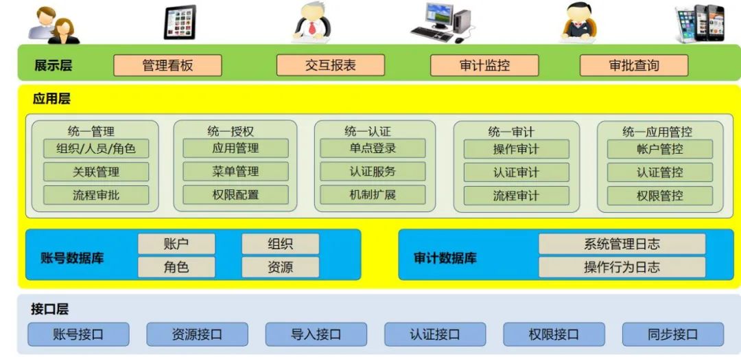 IDM身份管理系统是为解决企业内部多系统之间的用户信息不一致而开发的,主要定位于解决企业在5A功能上的需求,即:Account账号管理、Authentication认证管理、Authorization授权管理、Audit审计管理、App Control应用管控五个方面的实际需求,进而规范用户身份信息,保证系统安全,提高工作效率。
