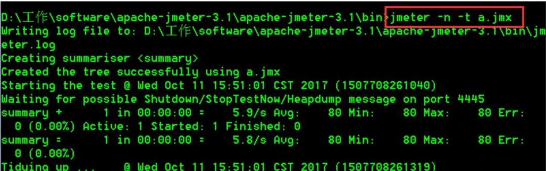 -n 非 GUI 模式→在非GUI模式下运行JMeter;-t 测试文件→要运行的JMeter测试脚本文件;-P 代理端口→设置JMeter使用的代理主机的端口号。JMeter -n -t test1.jmx -l logfile1.jtl -H 192.168.1.1 -P 8080