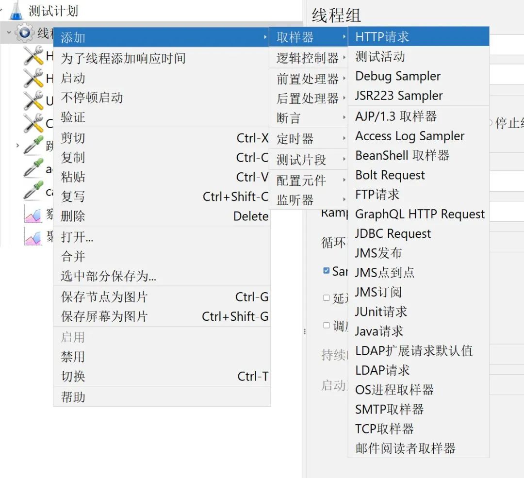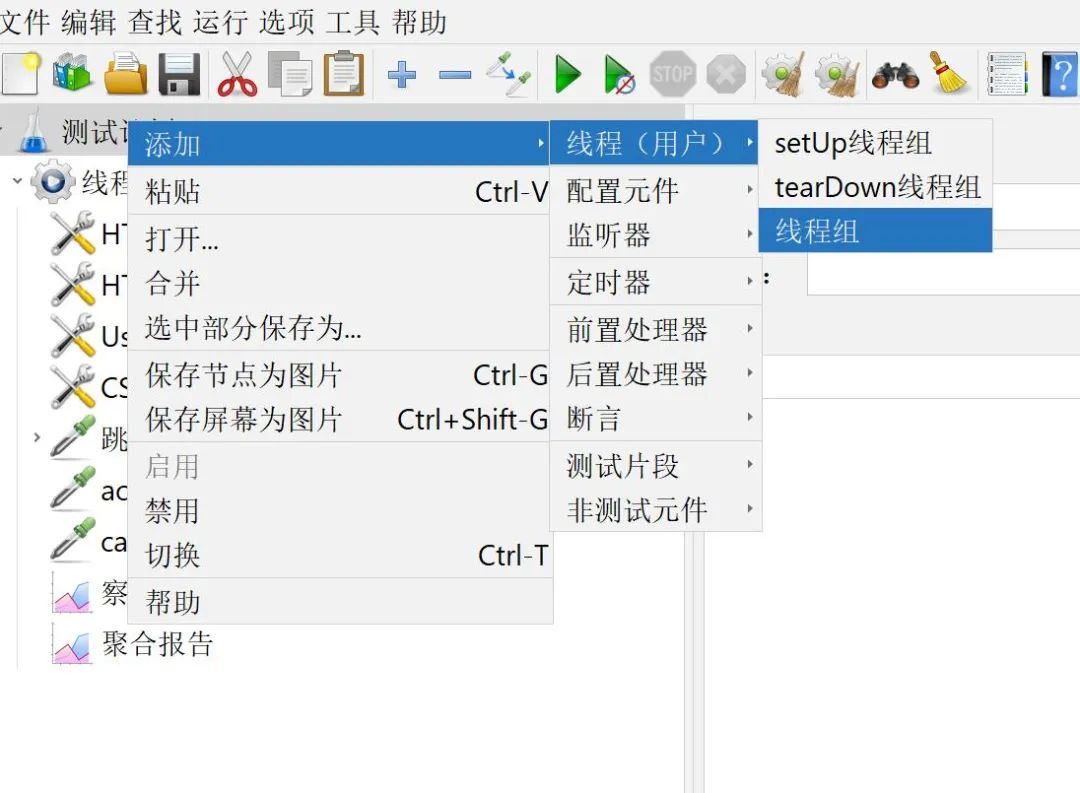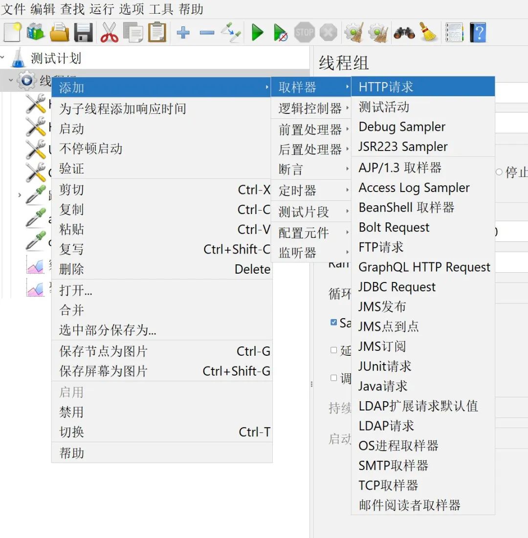 1.右键[测试计划]-[添加]-[线程]-[线程组]。