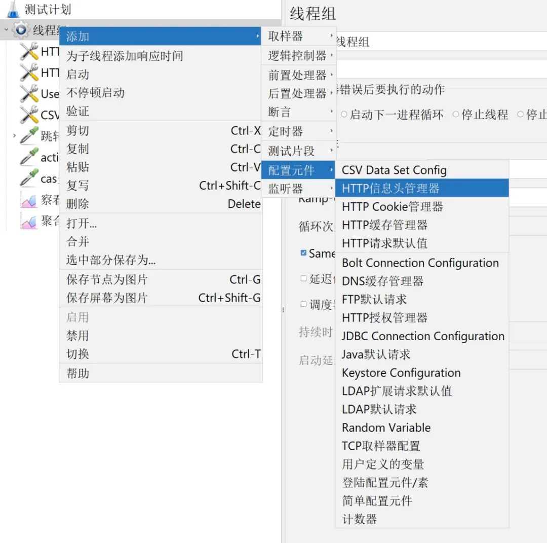 2.右键[线程组]-[配置元件]-[HTTP信息头管理器]。