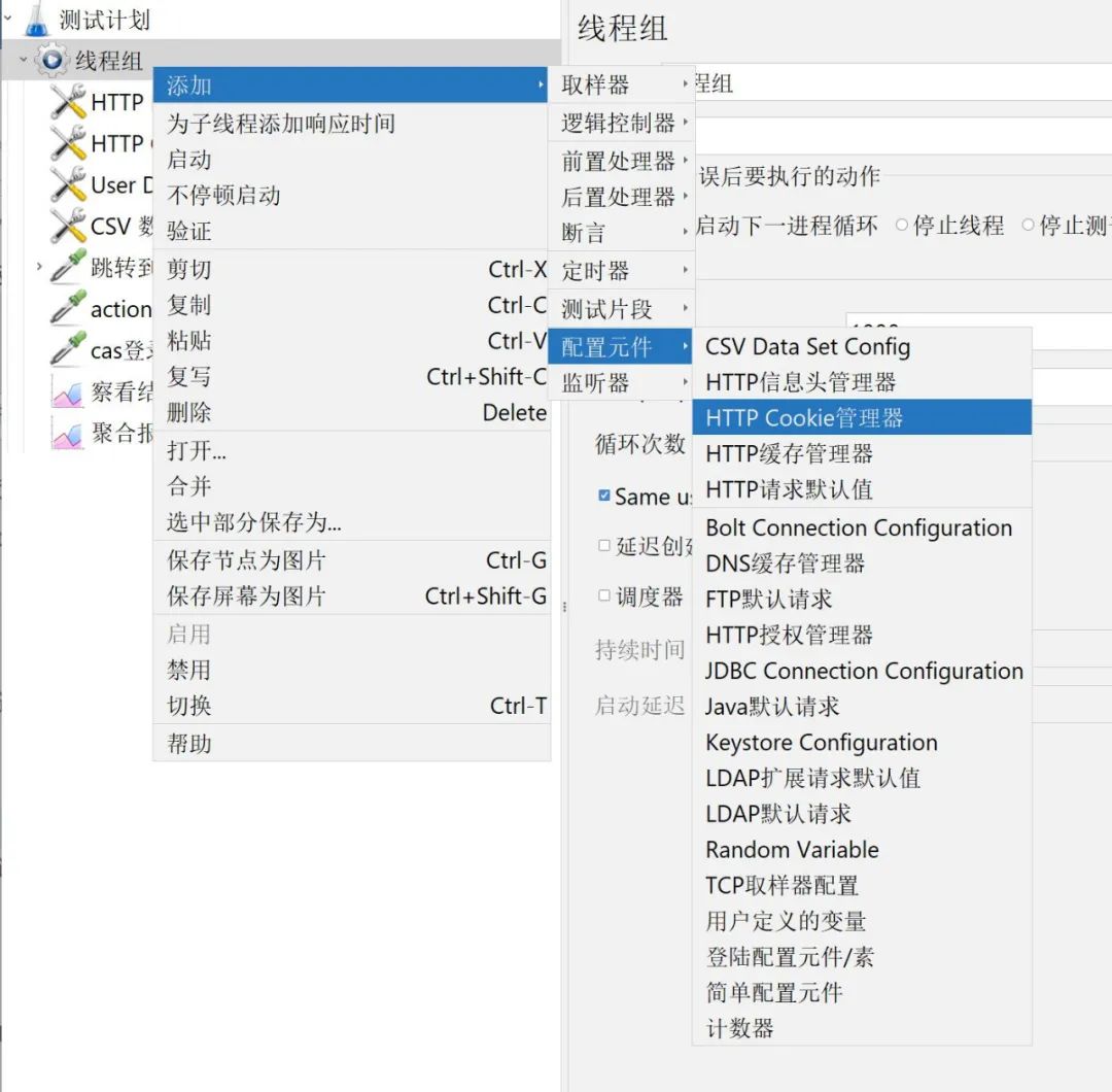 3.右键[线程组]-[配置元件]-[HTTP Cookie管理器]。