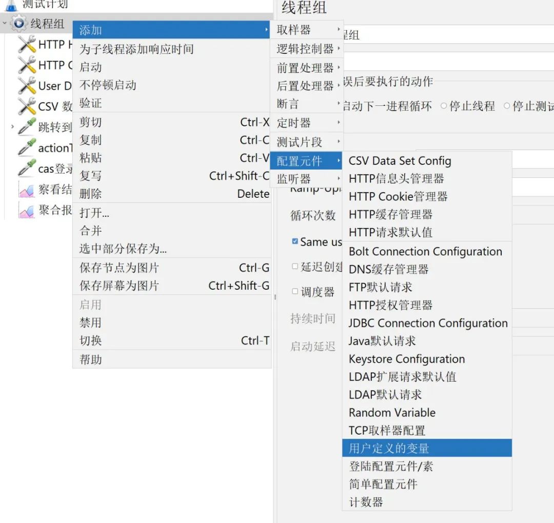 4.右键[线程组]-[配置元件]-[用户定义的变量]。