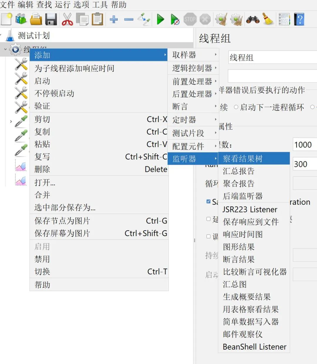 10.右键[测试计划]-[添加]-[监听器]-[察看结果树]。