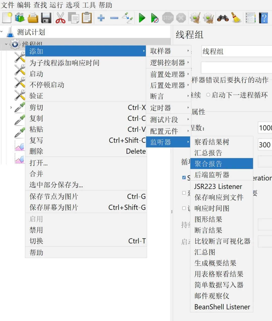 11.右键[测试计划]-[添加]-[监听器]-[聚合报告]。
