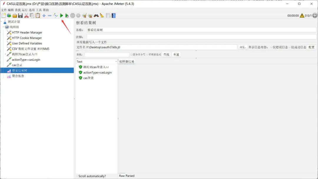2.Cas20ProxyReceivingTicketValidationFilter:在登录页面输入用户名密码提交表单进行CAS认证返回ticket票据。被Cas20ProxyReceivingTicketValidationFilter拦截,通过TicketValidator中的validate方法校验ticket票据是否合法。3.HttpServletRequestWrapperFilter:ticket票据校验通过后HttpServletRequestWrapperFilter会将用户信息放到AttributePrincipal对象中,然后将AttributePrincipal对象放到session中。4.XXXUserCasFilter:应用中扩展UserCasFilter拦截器,从session中获取AttributePrincipal对象实现登录认证过程。首先我们需要把线程数和循环次数以及Ramp-Up时间设置为1如下所示: